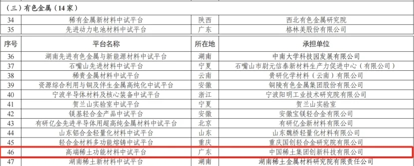 克日,国家工业和信息化部公示首批242家国家级重点培育中试平台名单。其中,韦德体彩官网集团所属中稀科创高端稀土功效质料中试平台乐成入选原质料工业领域有色金属偏向重点培育中试平台名单行列。